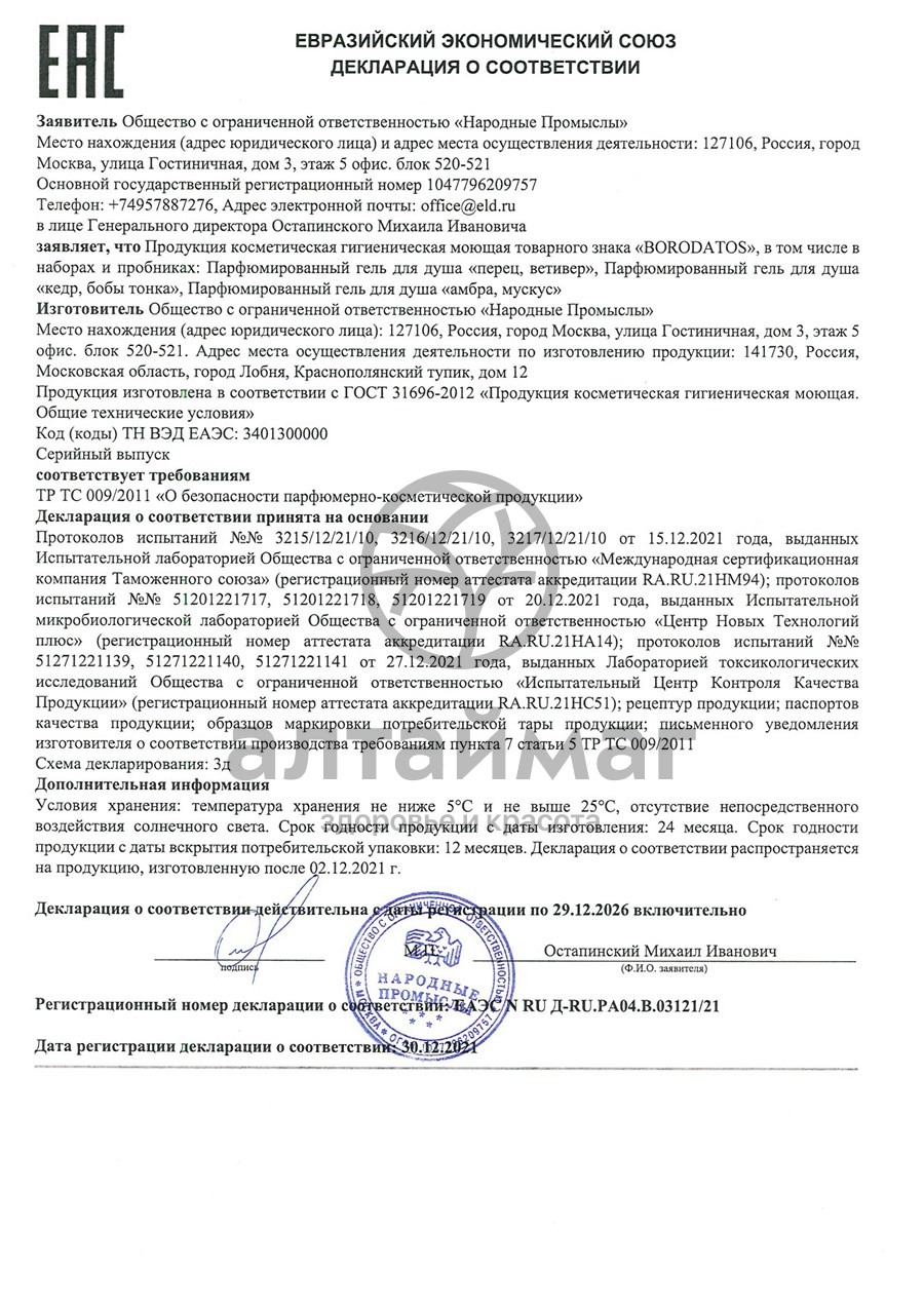 Есть вопросы по товару "Гель для душа перец/ветивер Borodatos 400мл"?