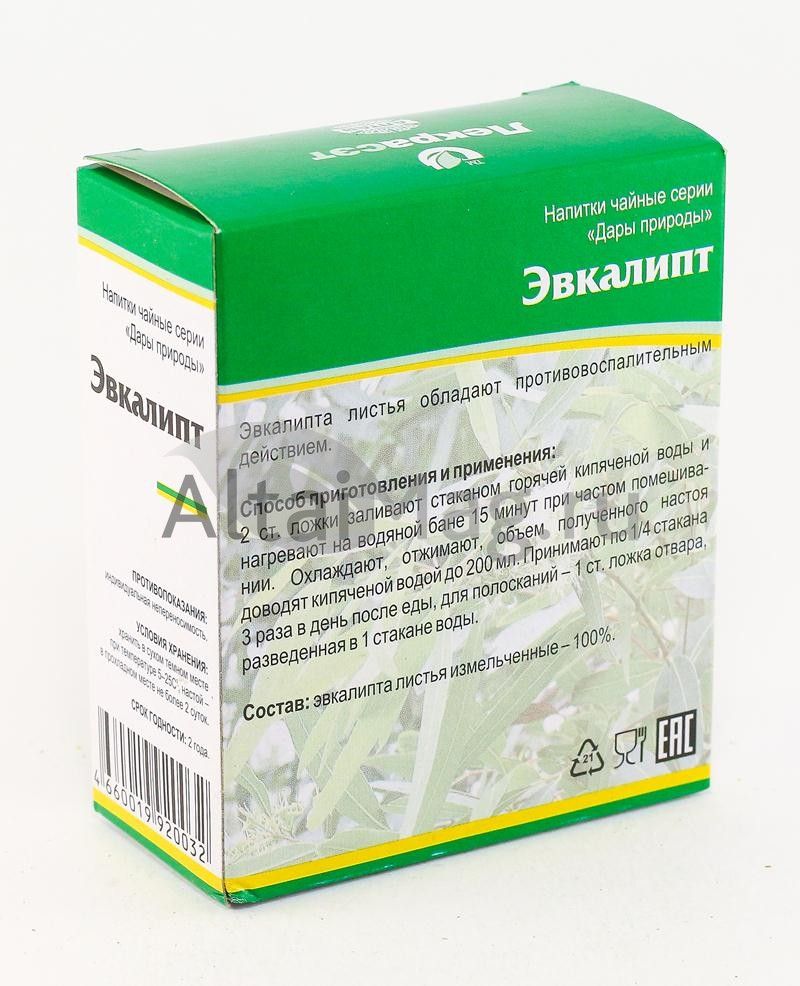 - Купите Эвкалипт (лист) чайный напиток 50 г в Симферополе по доступной цене 75 ₽ с доставкой на дом или заберите Ваш заказ в Симферополе из ближайшего пункта выдачи, сделав заказ на AltaiMag.ru.