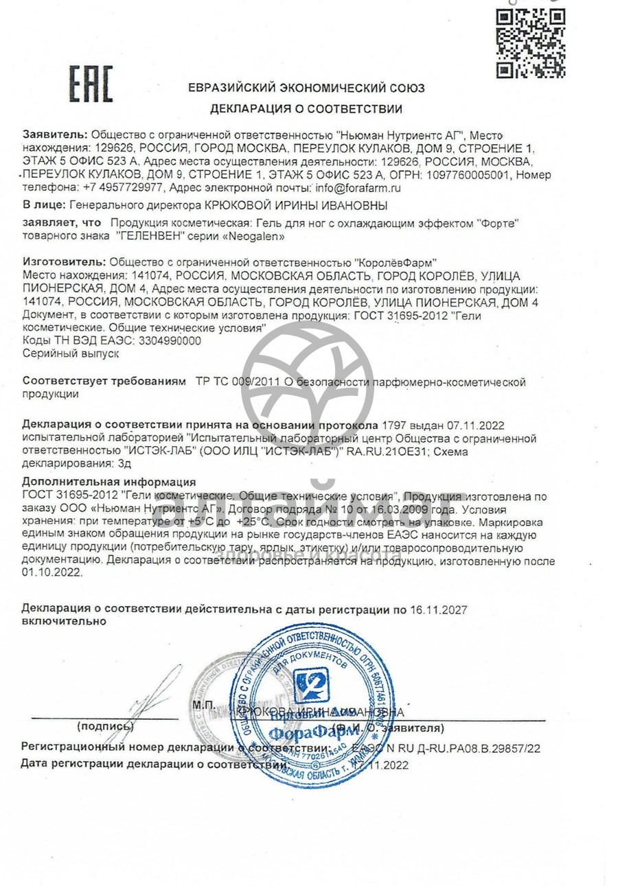 - Чтобы купить Геленвен форте гель для ног, 75 мл совершите всего несколько шагов: укажите количество продукта и нажмите на кнопку «Купить».