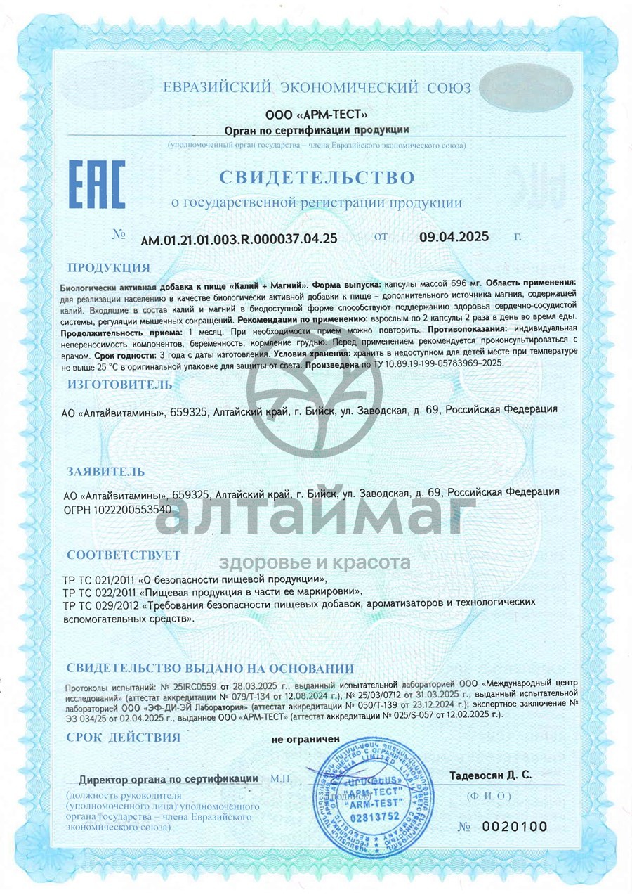 - Купите Калий + магний БАД Алтайвитамины 60 капсул в Симферополе по доступной цене 664 ₽ с доставкой на дом или заберите Ваш заказ в Симферополе из ближайшего пункта выдачи, сделав заказ на AltaiMag.ru.