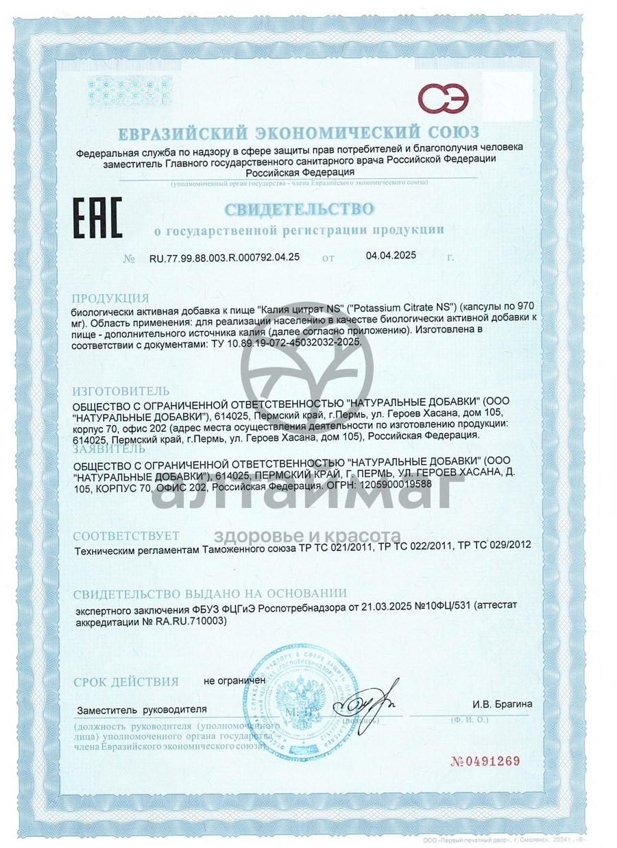 - Купите Калия Цитрат БАД Naturalsupp 60 капсул в Симферополе по доступной цене 330 ₽ с доставкой на дом или заберите Ваш заказ в Симферополе из ближайшего пункта выдачи, сделав заказ на AltaiMag.ru.