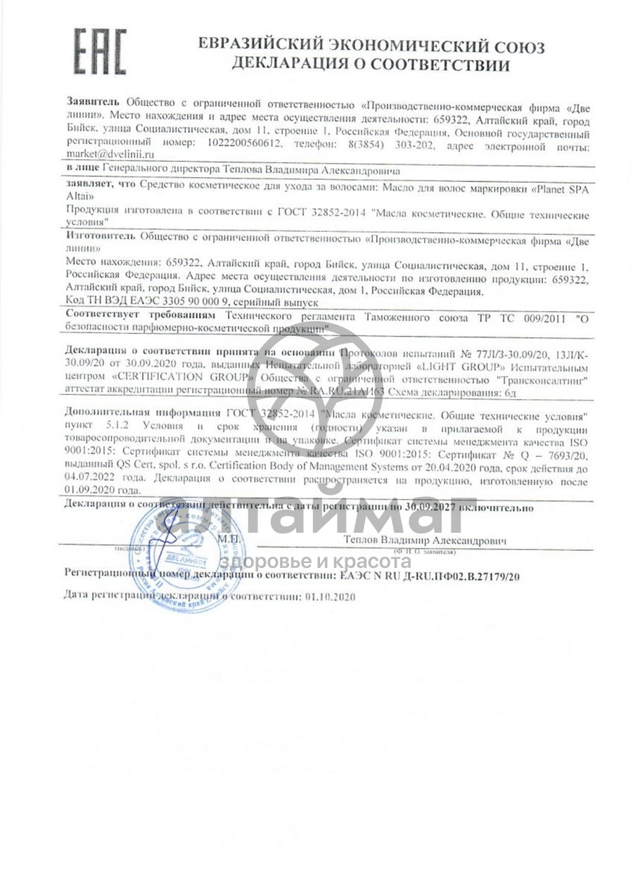 - Чтобы купить Планета Спа Алтай Масло для волос, 50 мл совершите всего несколько шагов: укажите количество продукта и нажмите на кнопку «Купить».