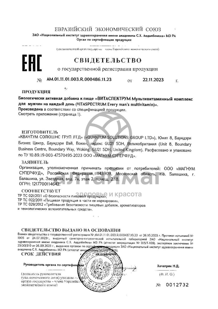 - Купите Витамины для мужчин VitaSpectrum 30 таблеток в Симферополе по доступной цене 489 ₽ с доставкой на дом или заберите Ваш заказ в Симферополе из ближайшего пункта выдачи, сделав заказ на AltaiMag.ru.